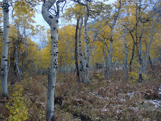 We've gone on a few hikes up the canyon, and with the fall leaves it was just beautiful. We love going up to the mountains and seeing the beauty around us. Lady likes to chase deer we've learned, but we think that she'd get scared if she ever got too close to one. She's pretty good though about staying right with us, and we enjoy being outdoors with her. She can be so funny, and her reactions to different environments is very entertaining. The one picture is like a "Where's Waldo" picture, you have to find Lady! The other is us hiking off the Alpine Loop.