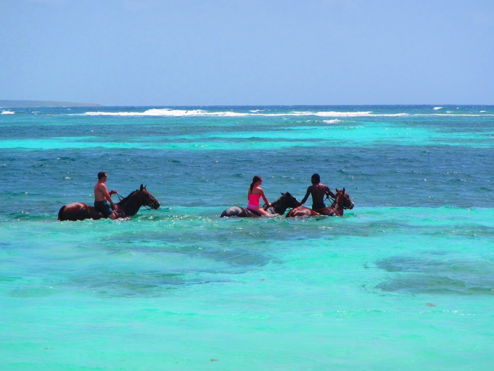 This was not your run of the mill horseback tour. It was only the four of us and our guide. His name was Reme, and even though he didn't own the horses, you could tell that he was the one they trusted. He knew the specific order they needed to be in, as they do have a pecking order. We got to gallop through the trails to the beach. And then, at the beach, it was like on the movie Seabiscut. It felt like a race, I have never gone so fast on a horse in my life! And been in control. Holy macaroons, I loved it! Then we got to a spot, got down to our swimsuits, and took off the saddles. Then we SWAM with the horses. Reme took us out two at a time, bareback, and the horses followed him and his throughbred Aztec, and then walked out on the reef. When we were far out, we'd turn towards shore, and the the horses would JUMP off the reef and swim back while we were parallel to their backs swimming as well.