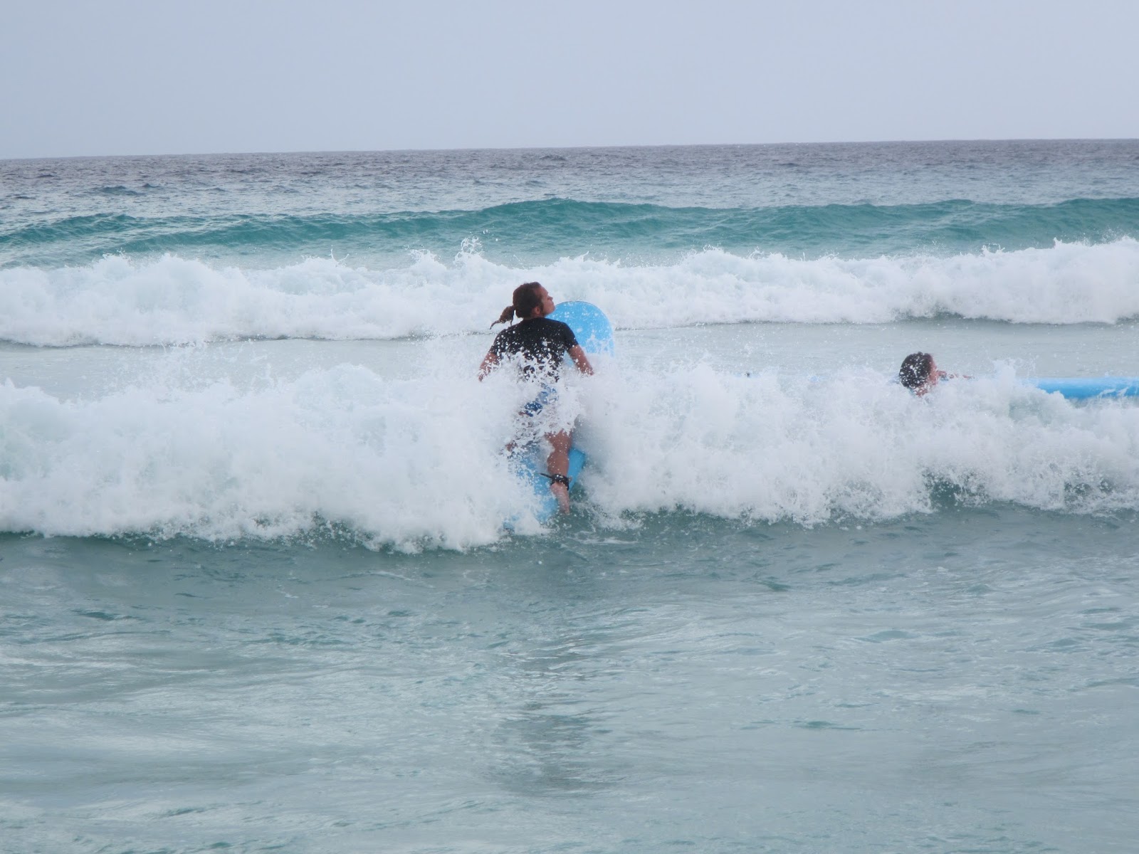 We finally made it to the Surf Shack, got the biggest boards there were , and tried it out. I've never even tried to boogie board, so this actually turned out to be really hard for me. Matt was great, and Nathan got up on the board too.